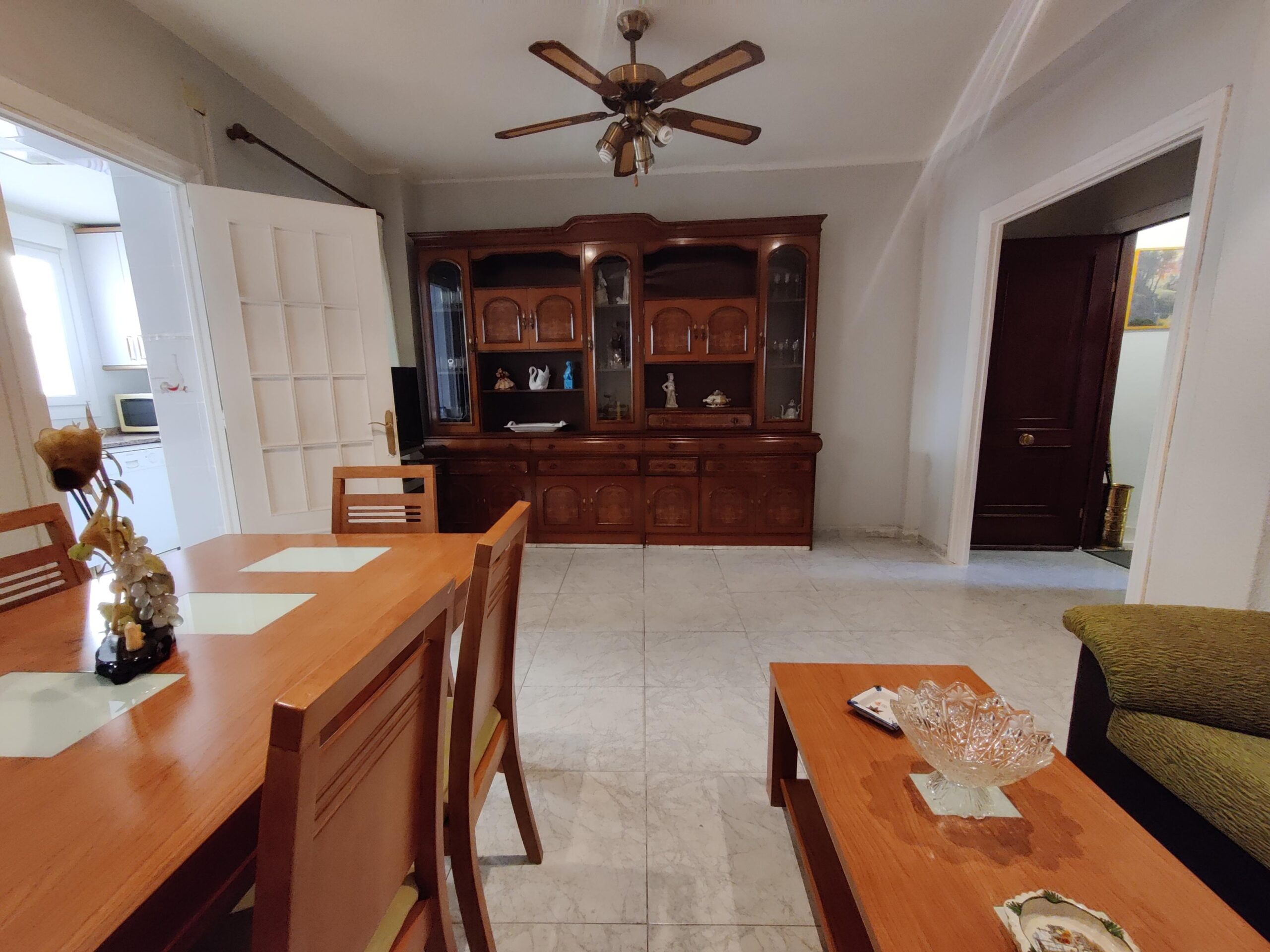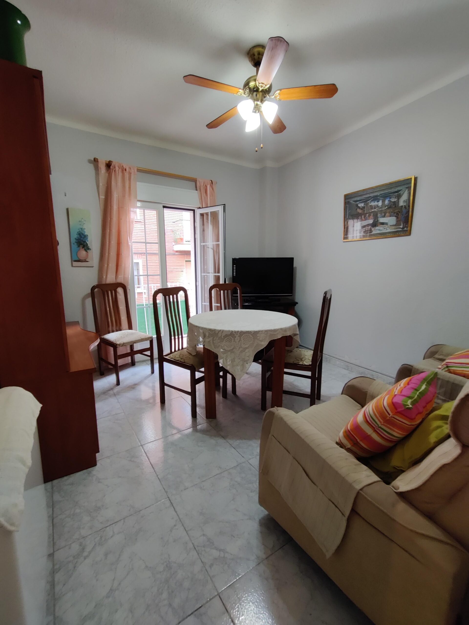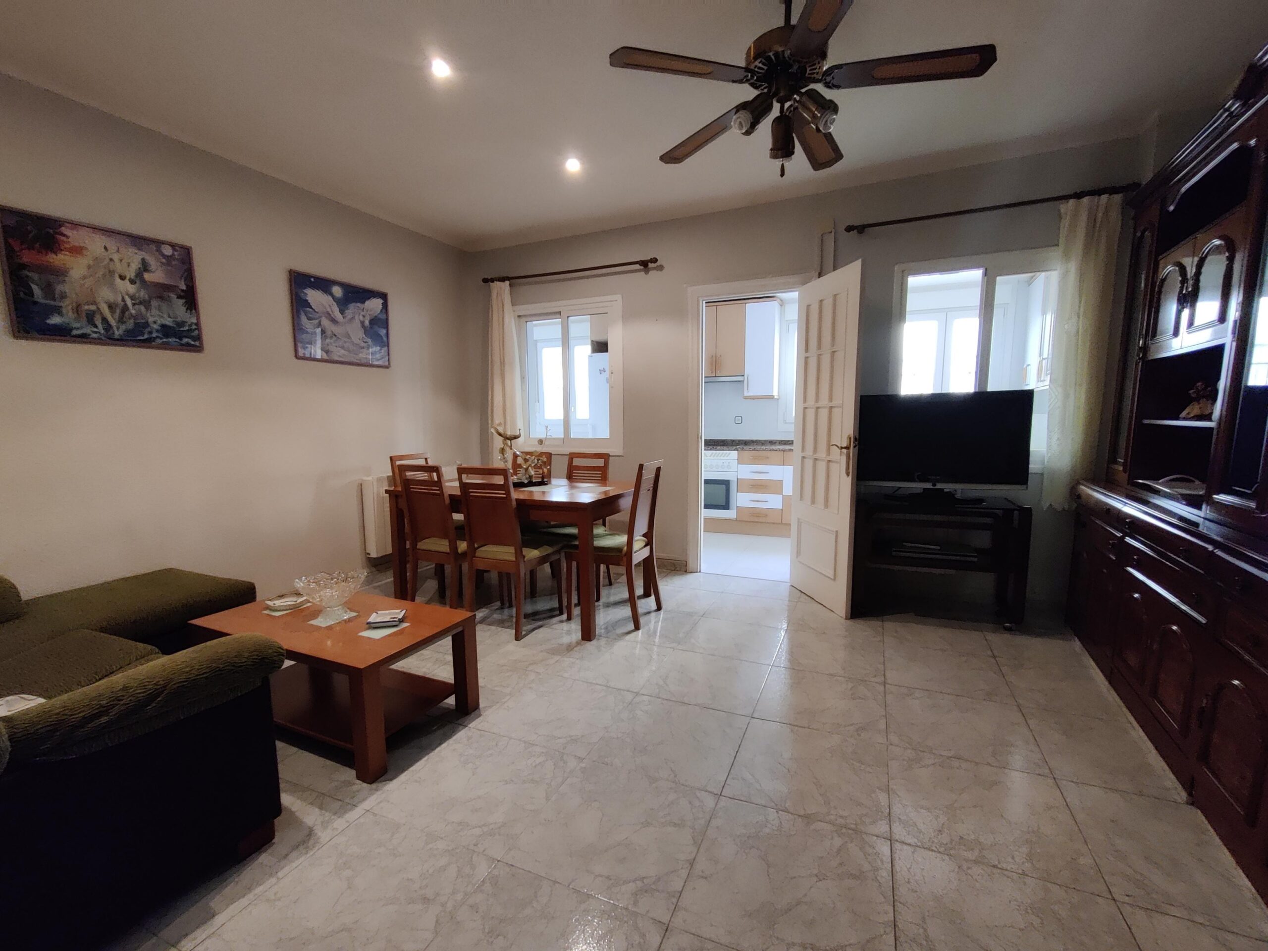 El inmueble distribuído en gran salón-comedor, cocina independiente amplia totalmente amueblada y equipada con electrodomésticos, 3 habitaciones dobles, una de ellas con terraza al exterior.