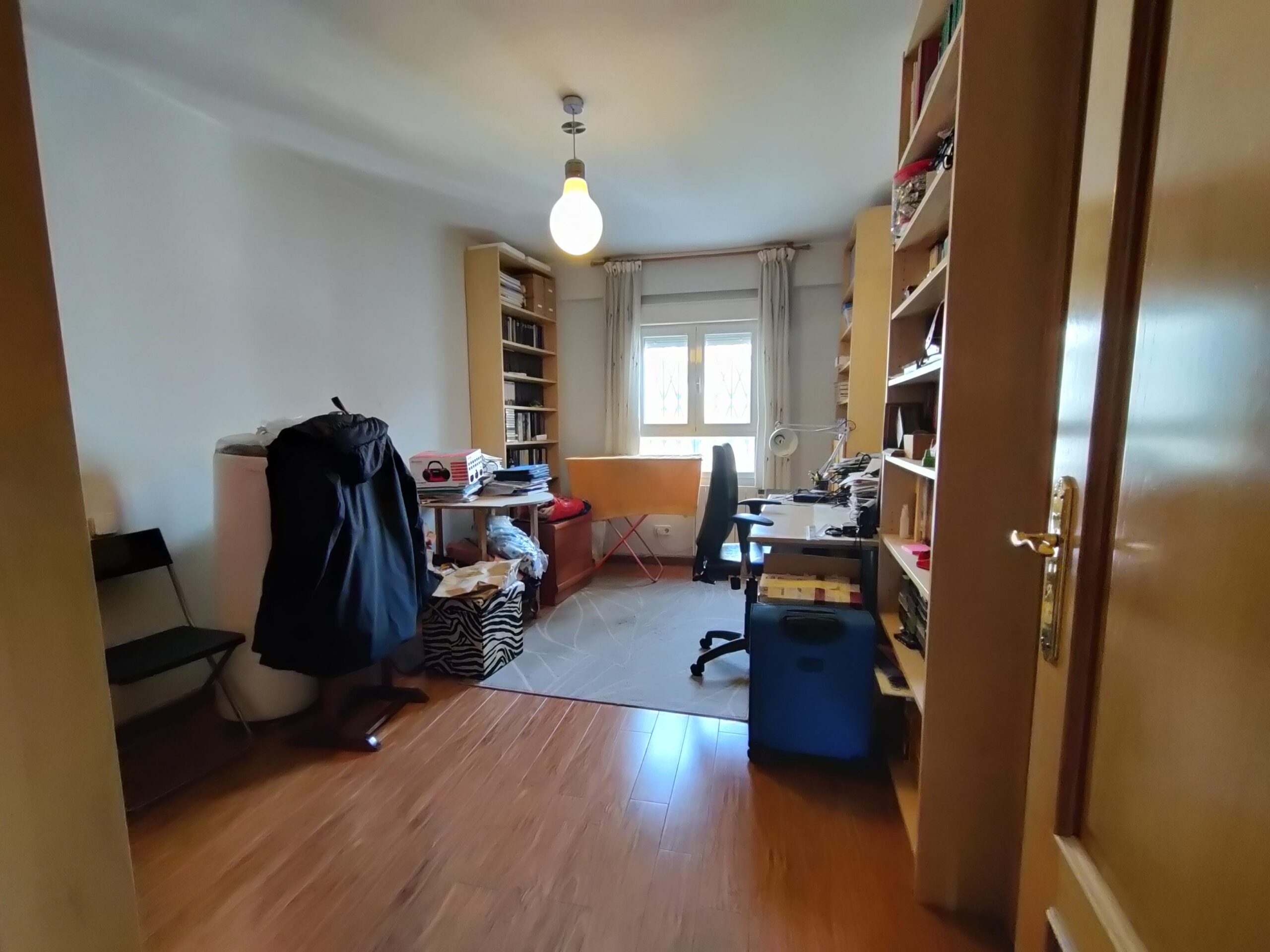 Suelos de tarima flotante, ventanas de climalit blancas, pintura lisa, puertas de interior roble y puerta de entrada blindada.